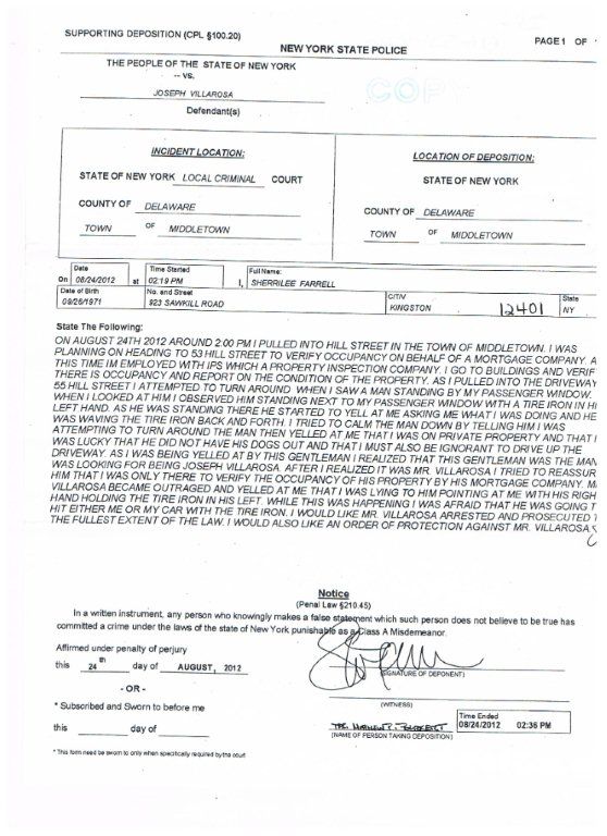 For some reason, Joseph Villarosa of Arkville, NY has involved himself with problems at the