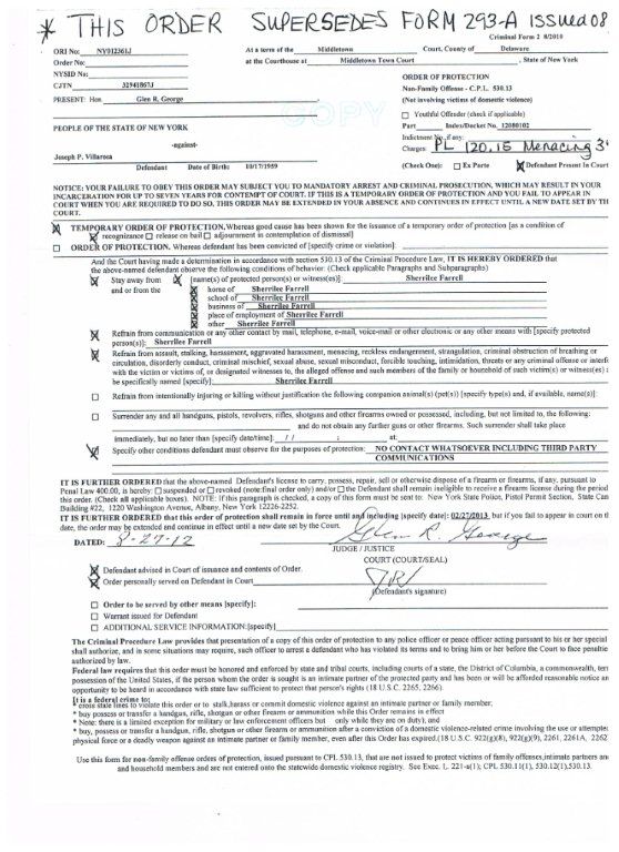 The court also issued an order of protection for the